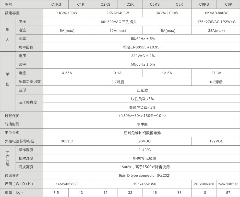 C系列主要技術(shù)參數(shù)(單進(jìn)單出)