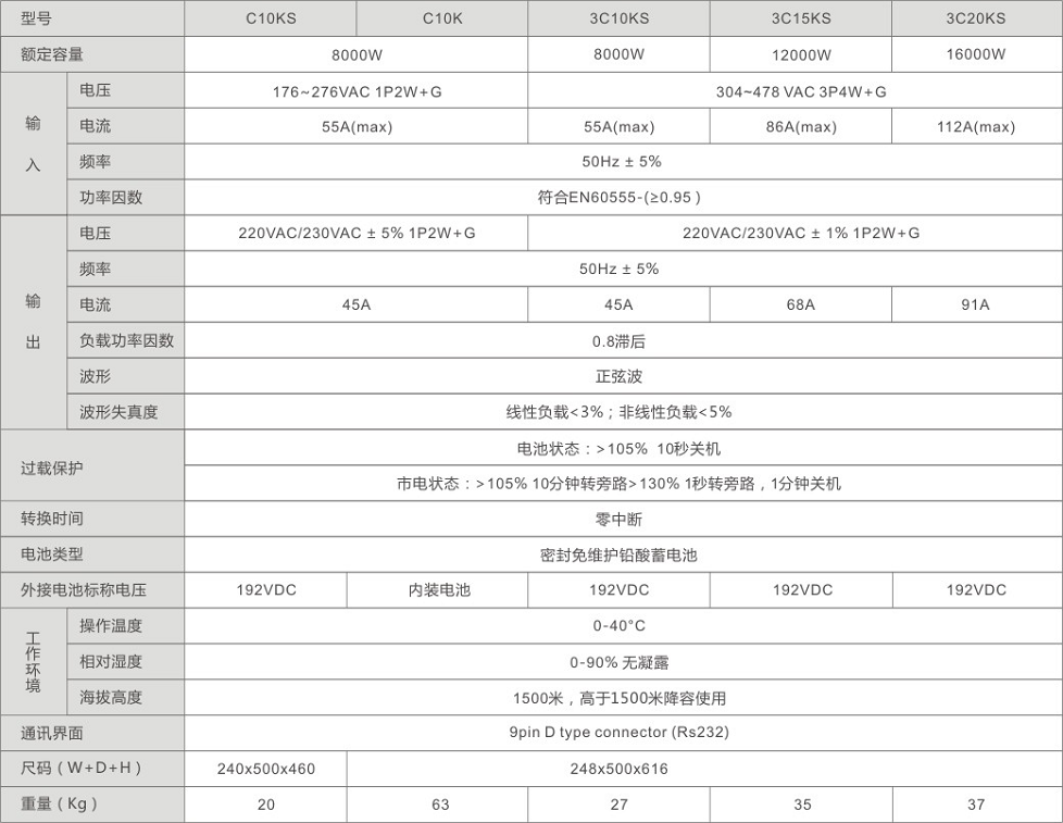 產(chǎn)品特點(diǎn):C/3C系列充分凝聚了UPS尖端技術(shù)精華,整機(jī)采用先進(jìn)的16位高速CPU控制及40KHZ高頻技術(shù),體積小,重量輕,工作效率高;零轉(zhuǎn)換與純正弦波輸出設(shè)計(jì)確保C/3C系列UPS廣泛適用于各類(lèi)負(fù)載。該系列產(chǎn)品采用簡(jiǎn)潔的界面信息處理技術(shù),用戶可根據(jù)顯示屏直觀地了解UPS的運(yùn)行狀態(tài),具有全數(shù)字化的自動(dòng)偵測(cè)與保護(hù)功能,遠(yuǎn)程監(jiān)控功能更達(dá)國(guó)際領(lǐng)先水平,是商用服務(wù)器、PC服務(wù)器及外圍設(shè)備、通訊及 網(wǎng)絡(luò)設(shè)備、家用辦公計(jì)算機(jī)及其他精密電子設(shè)備可靠的電源保護(hù)神。