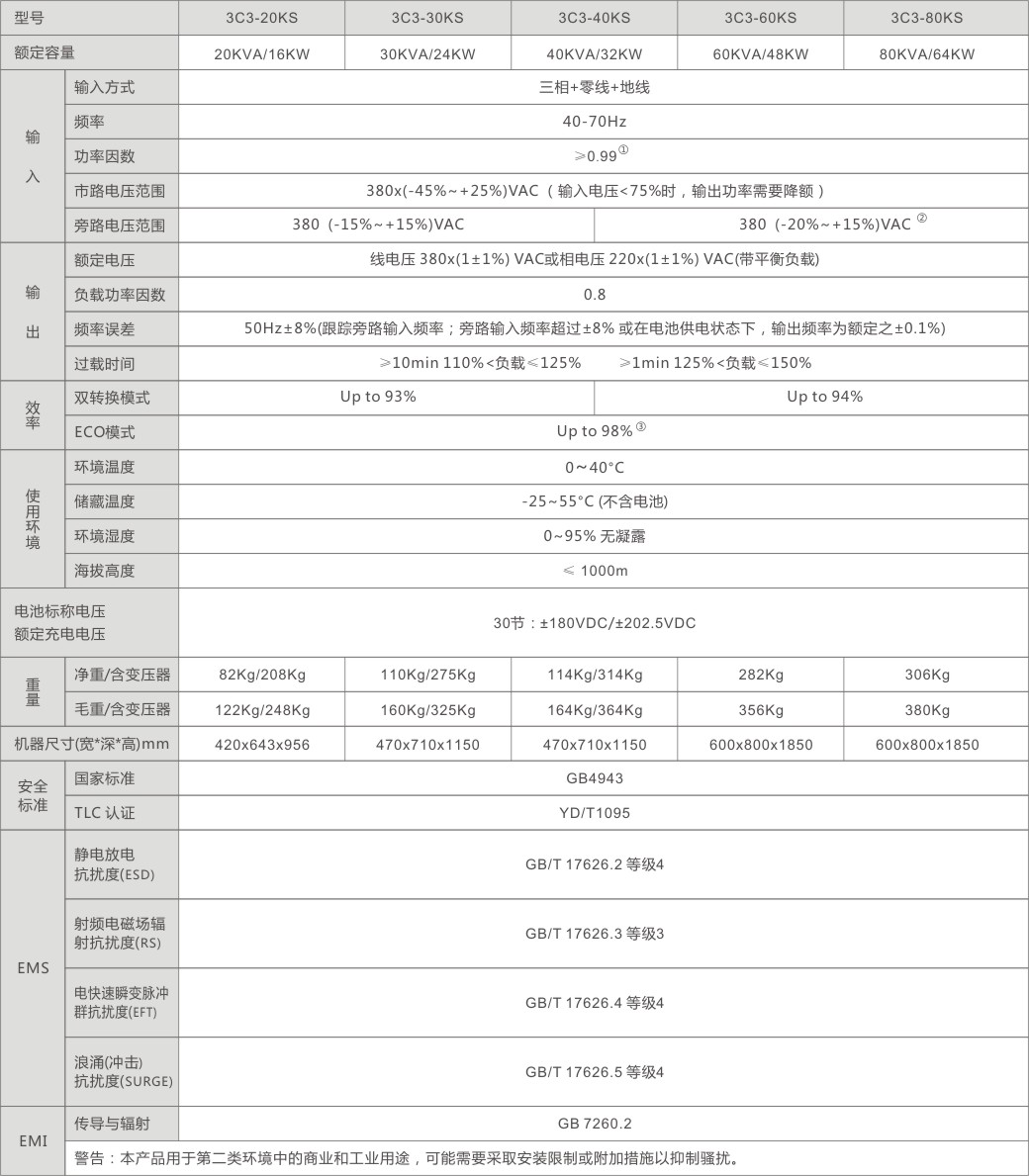 ③3C3-20KS-40KS支持單機ECO模式,3C3-60KS-80KS單機或并機系統(tǒng)下都支持ECO模式。