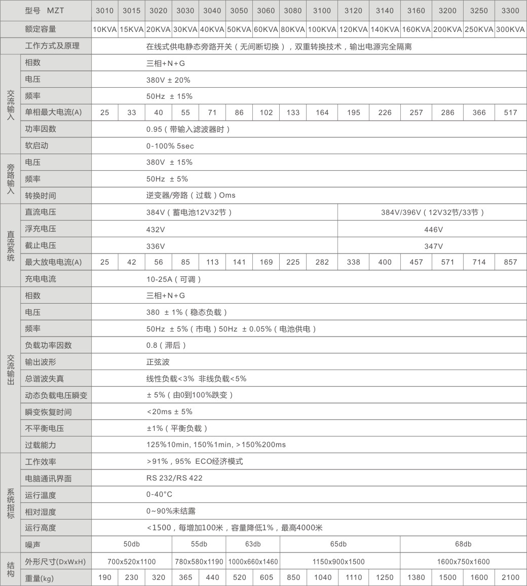 MZT3000系列主要技術參數(shù)