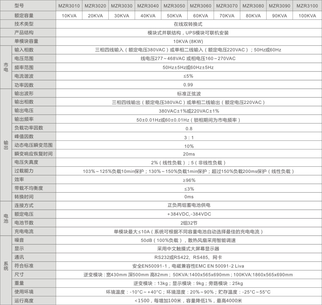 該產(chǎn)品工作效率高,功率密度大是其*大的特點,單模塊可提供10KVA(8000W)、15KVA(12000W)、20KVA(16000W)的功率輸出。