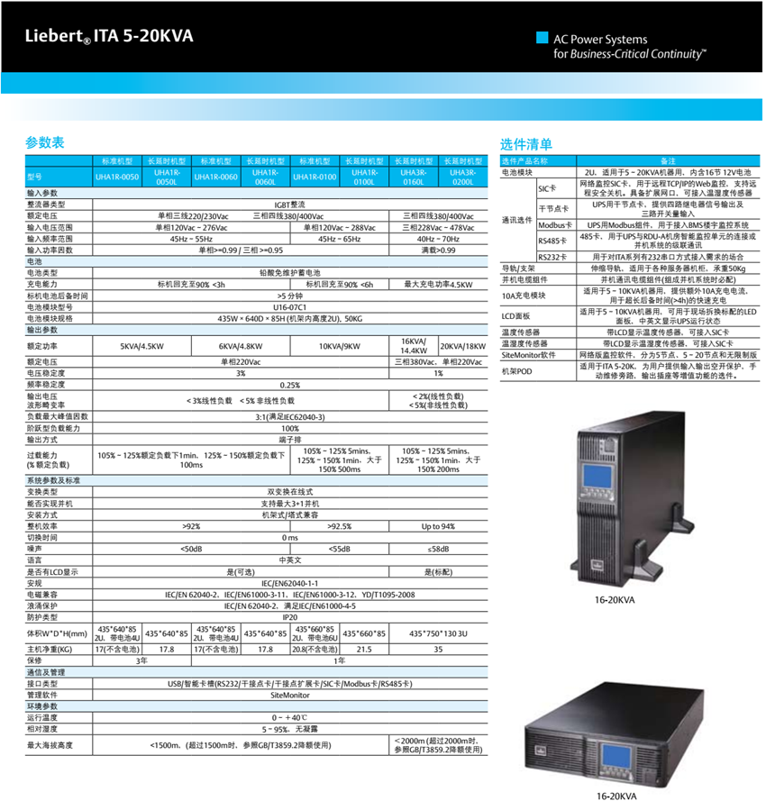 ITA 系列 UPS 功率范圍: 1-20K (*新推出)